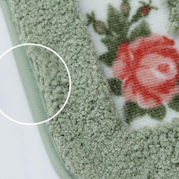 便器の形に合わせたカットと四方を彩る薔薇の刺繍が特徴的で、まるで額縁のようなデザインが空間を上品に演出します。
