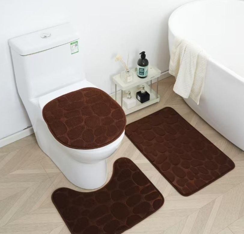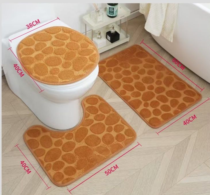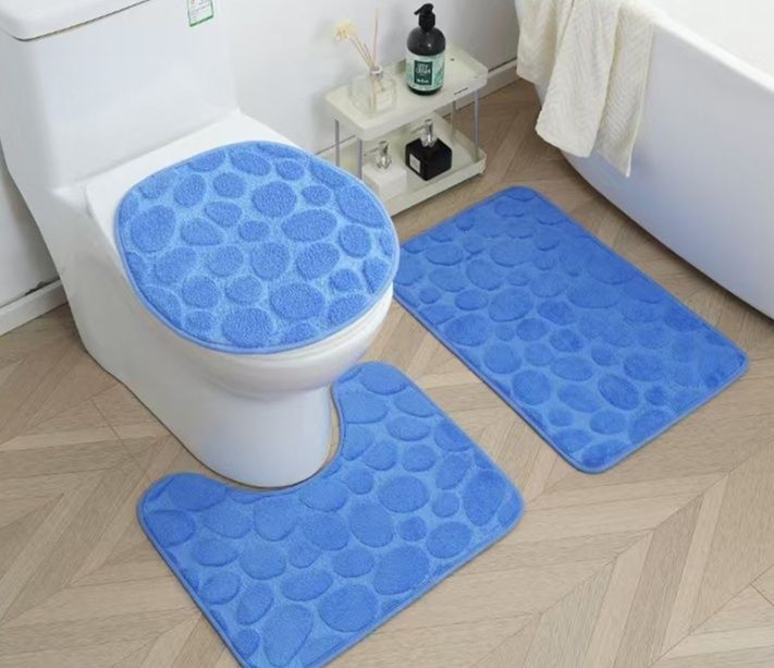 便座カバー、足元マット、便器前マットの三点がセットになっており、統一感のあるトイレ空間をすぐに実現できます。