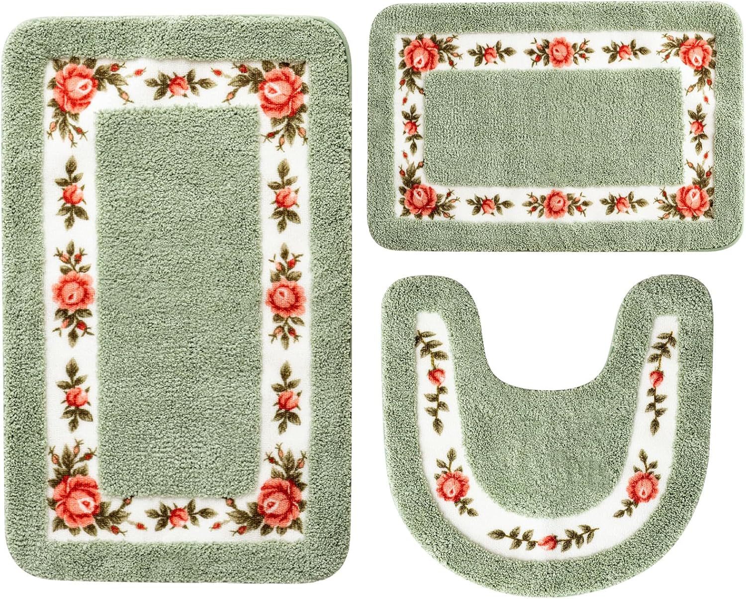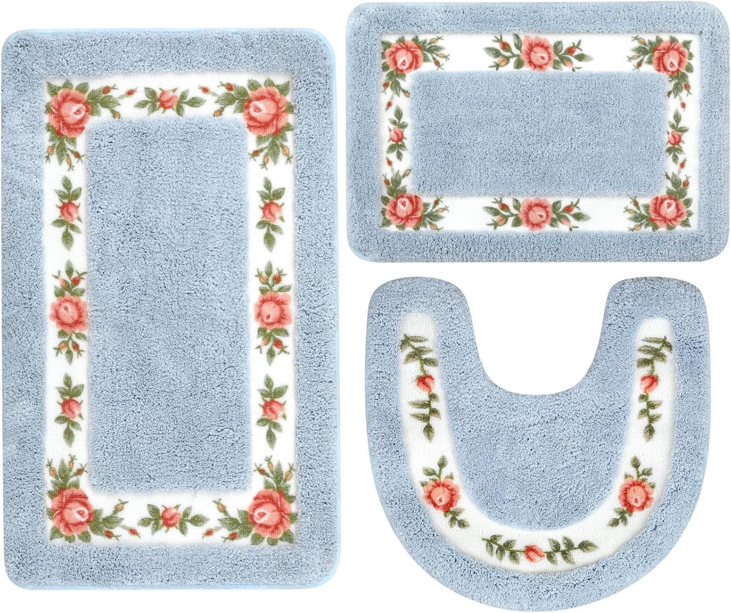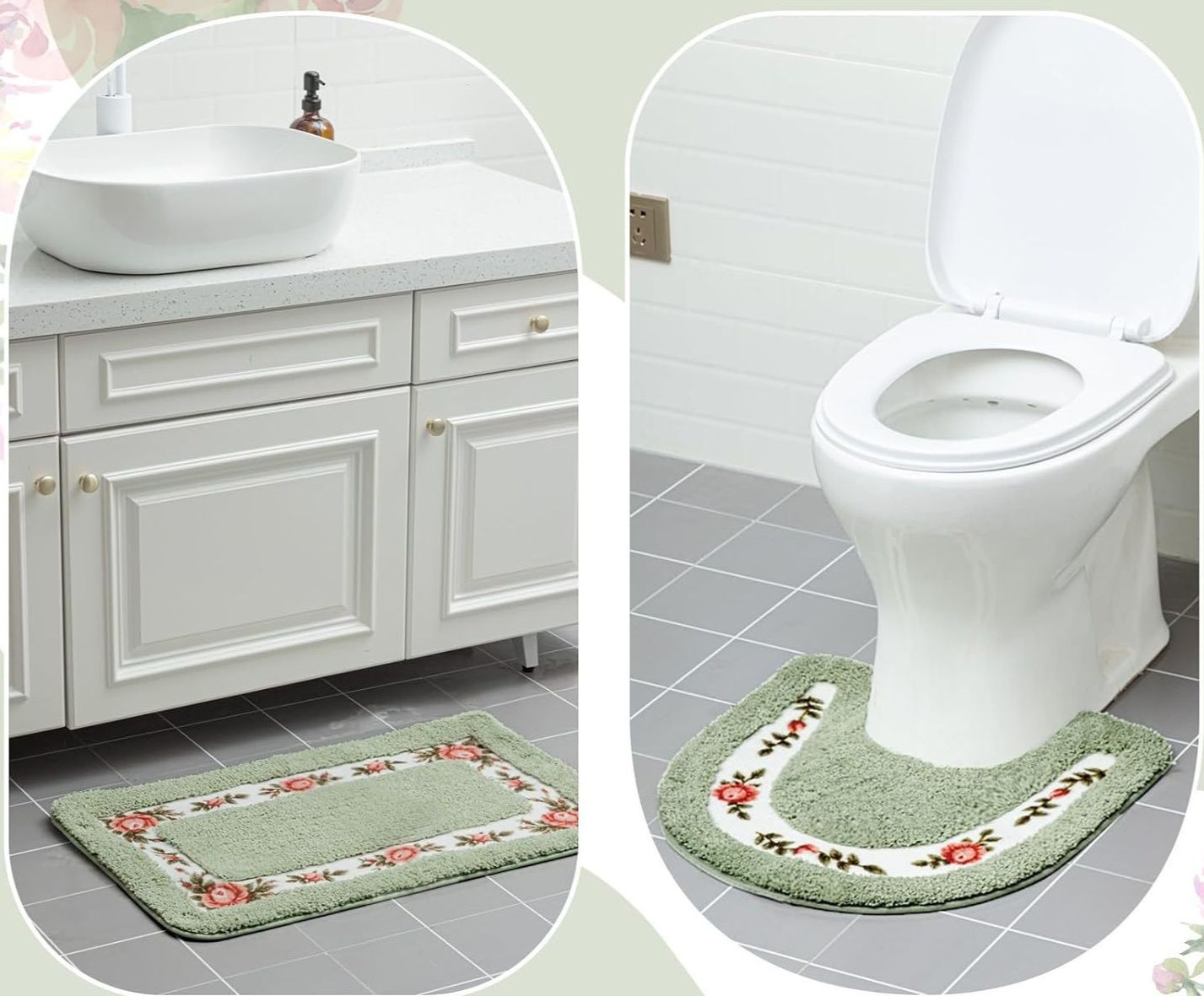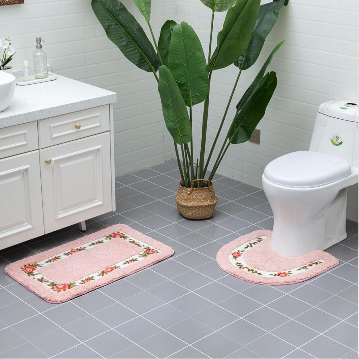 華やかな花柄刺繍が施されたトイレマット二点セットです。
