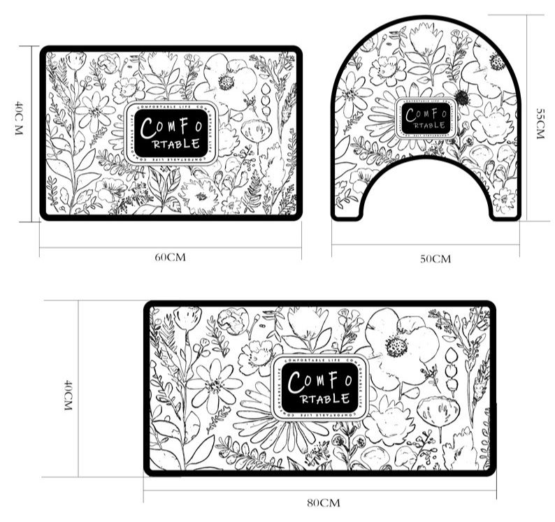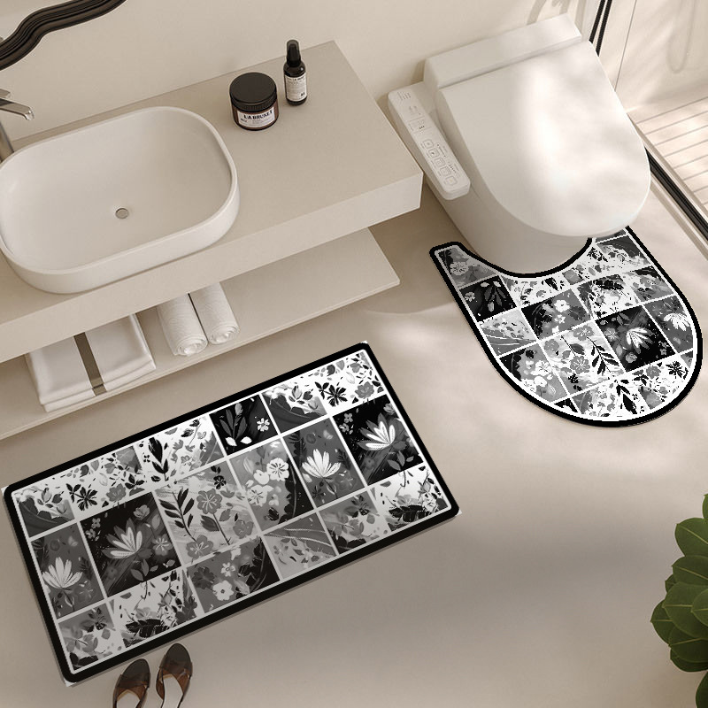 便座カバー、便座マット、足元マットの三点セットで、トイレ空間を統一感のある上品な雰囲気に演出します。