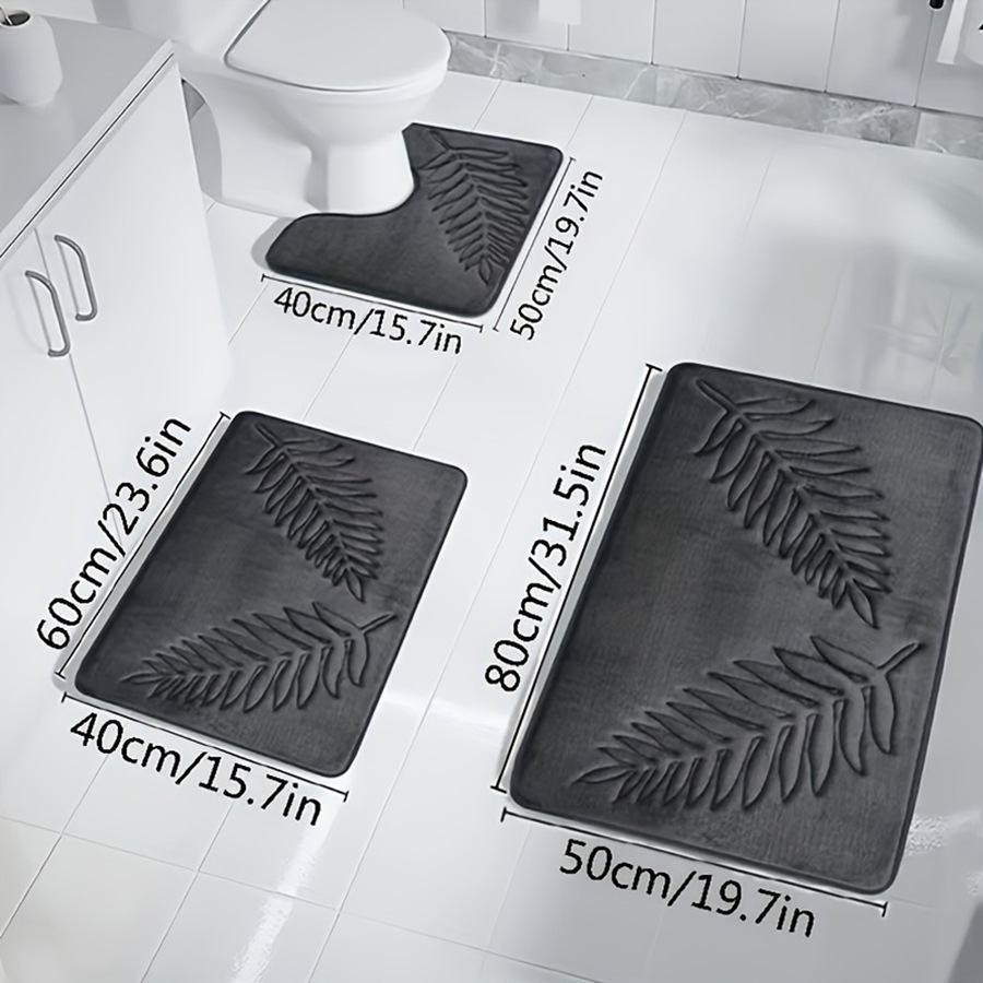 美しい葉模様が立体的に浮かび上がる、上質なトイレマットのセットです。