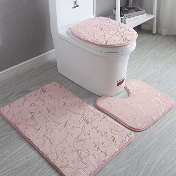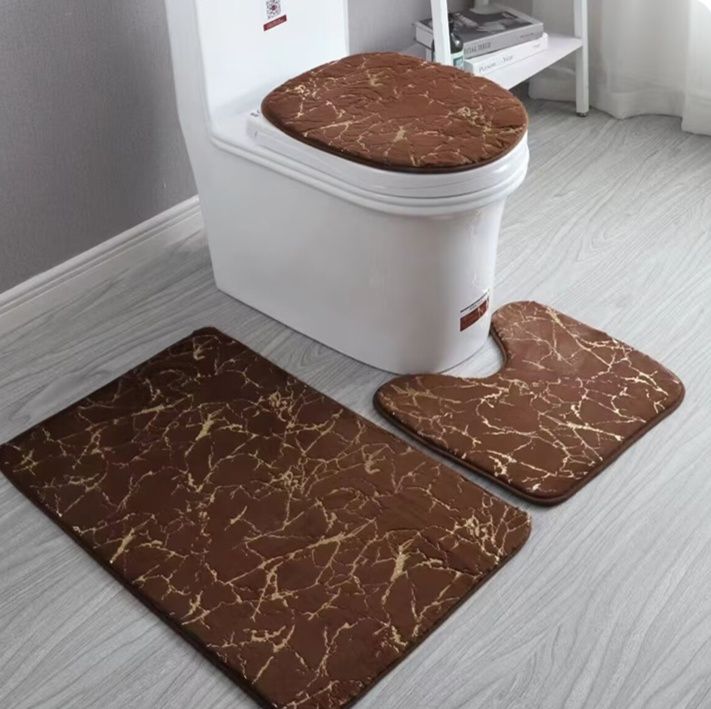便座カバー、足元マット、便器周りマットの三点セットで、トイレ空間を統一感のある洗練された雰囲気に演出します。