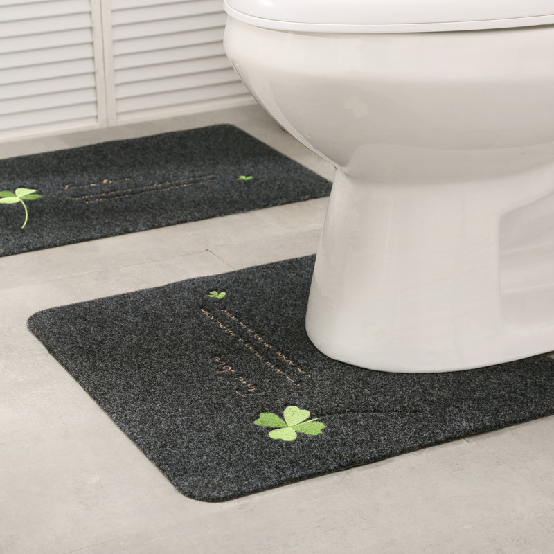シンプルなデザインに幸運を呼ぶ四つ葉のクローバーの刺繍をあしらったトイレマットです。