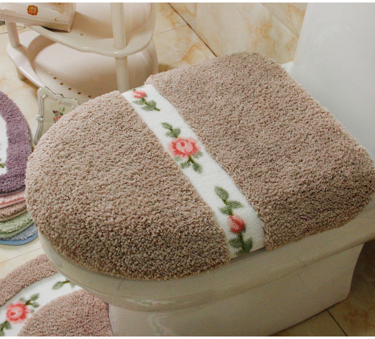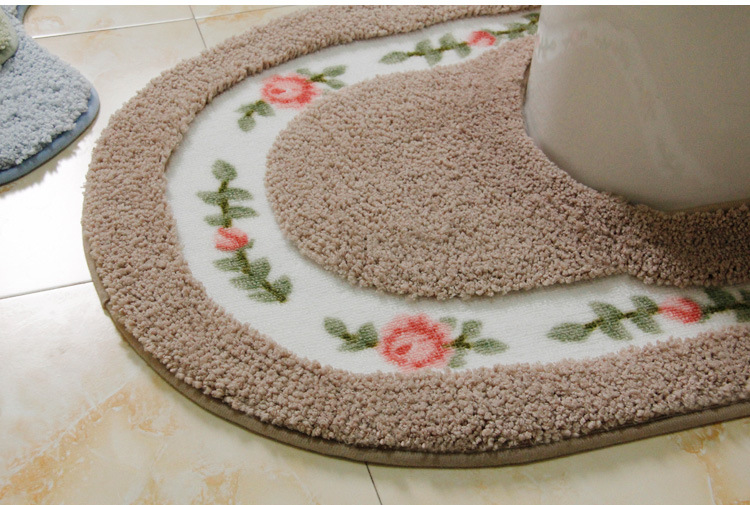優雅な花柄刺繍が魅力的なトイレマットのセットです。