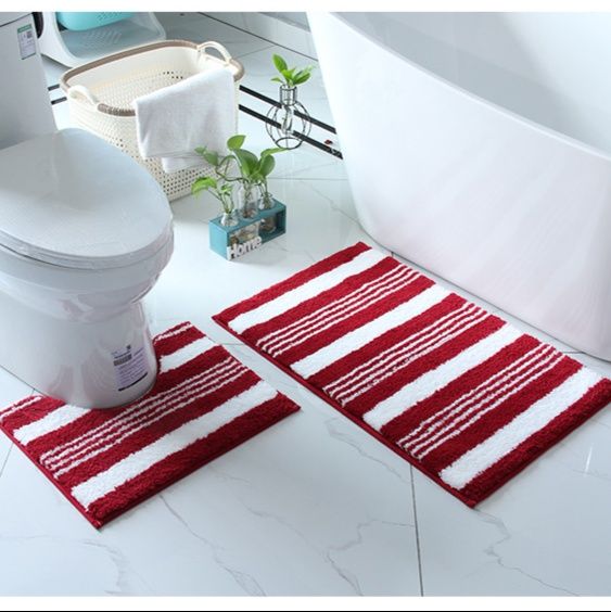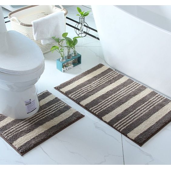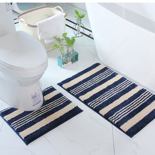 清潔感あふれるボーダーデザインが特徴のトイレマットセットです。 便器周りと床に敷ける二枚組で、トイレ空間を統一感のあるおしゃれな雰囲気に演出します。 裏面には滑り止め加工が施されており、安全性にも配慮しました。 ふかふかの肌触りで足元を優しく包み込み、吸水性にも優れています。 毎日のトイレ時間を快適に彩るセットです。
