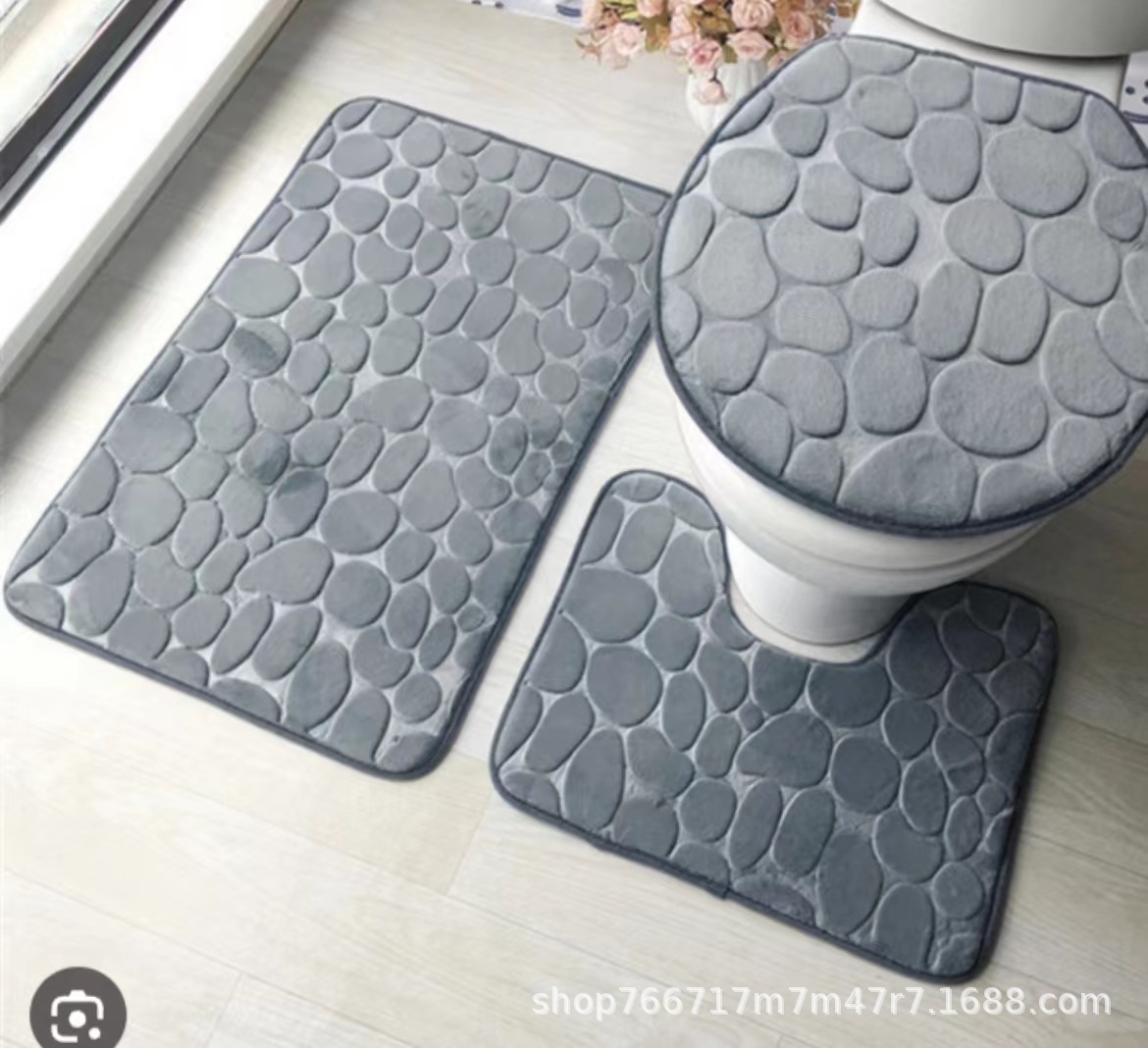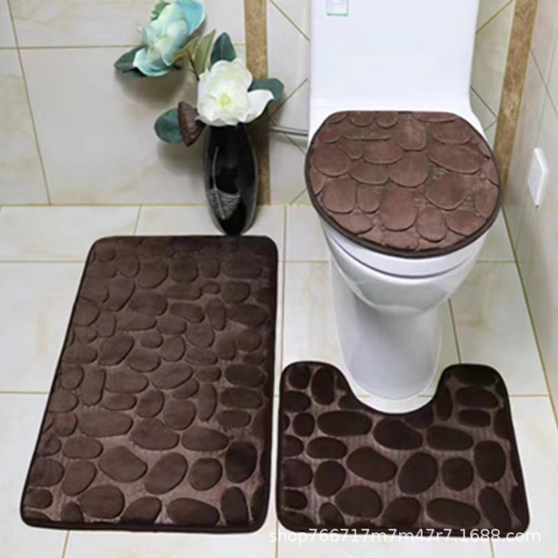 丸い小石を敷き詰めたような可愛らしいデザインのトイレマットセットです。