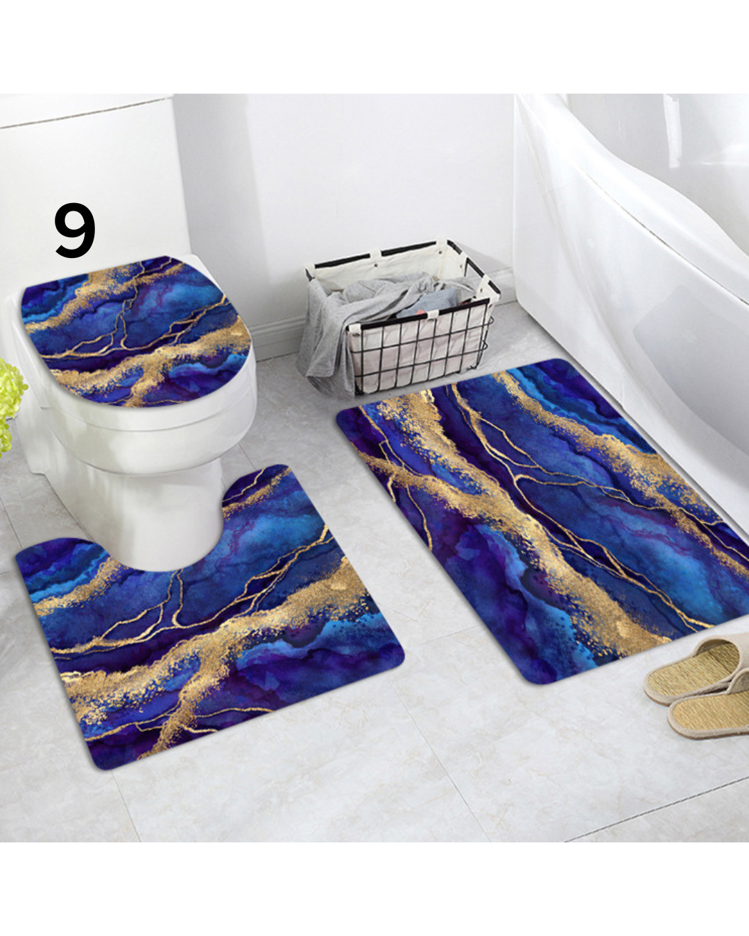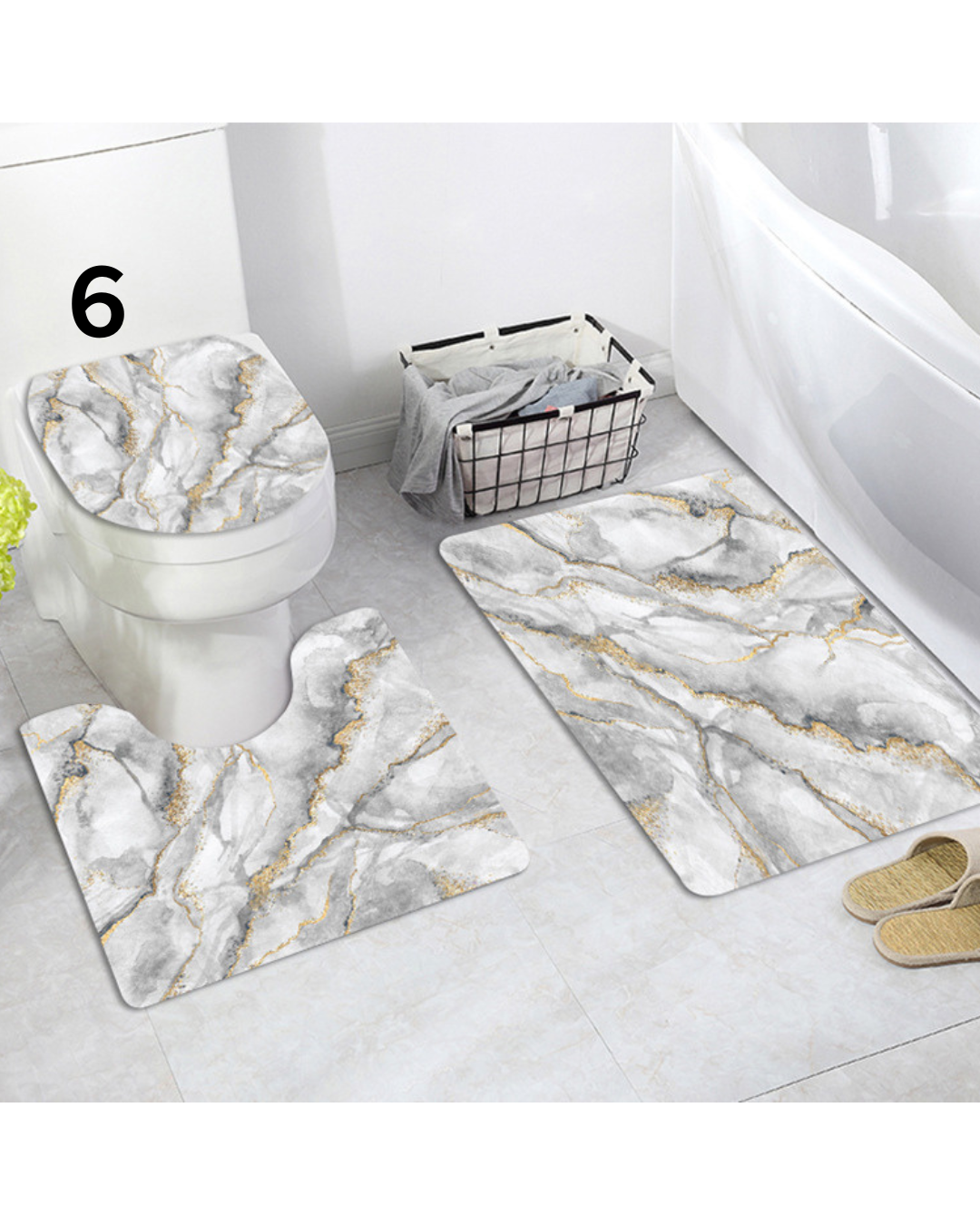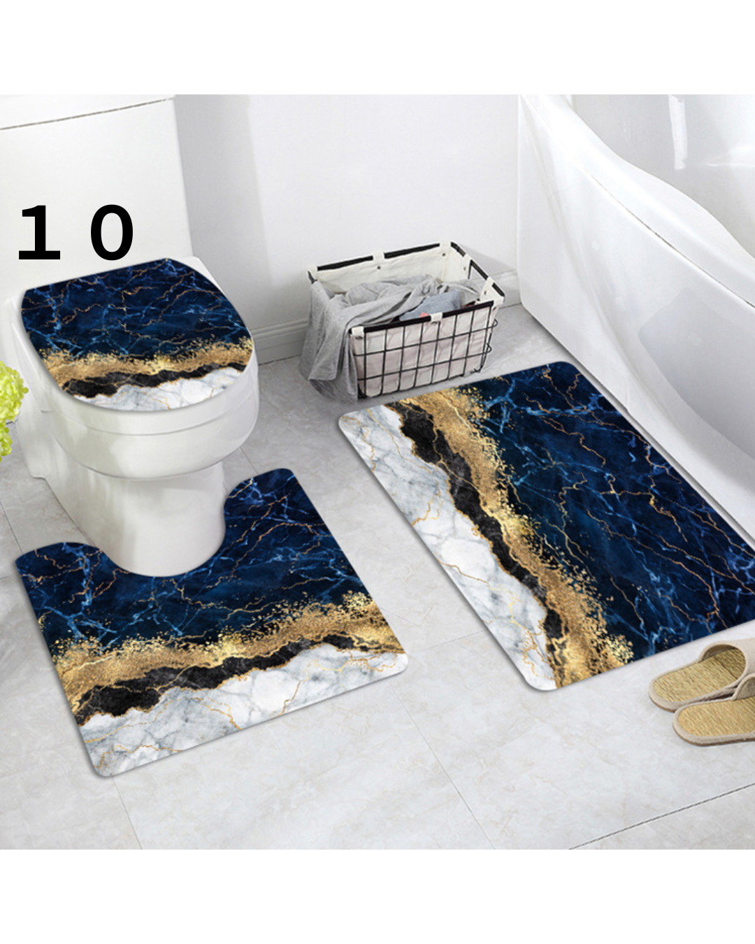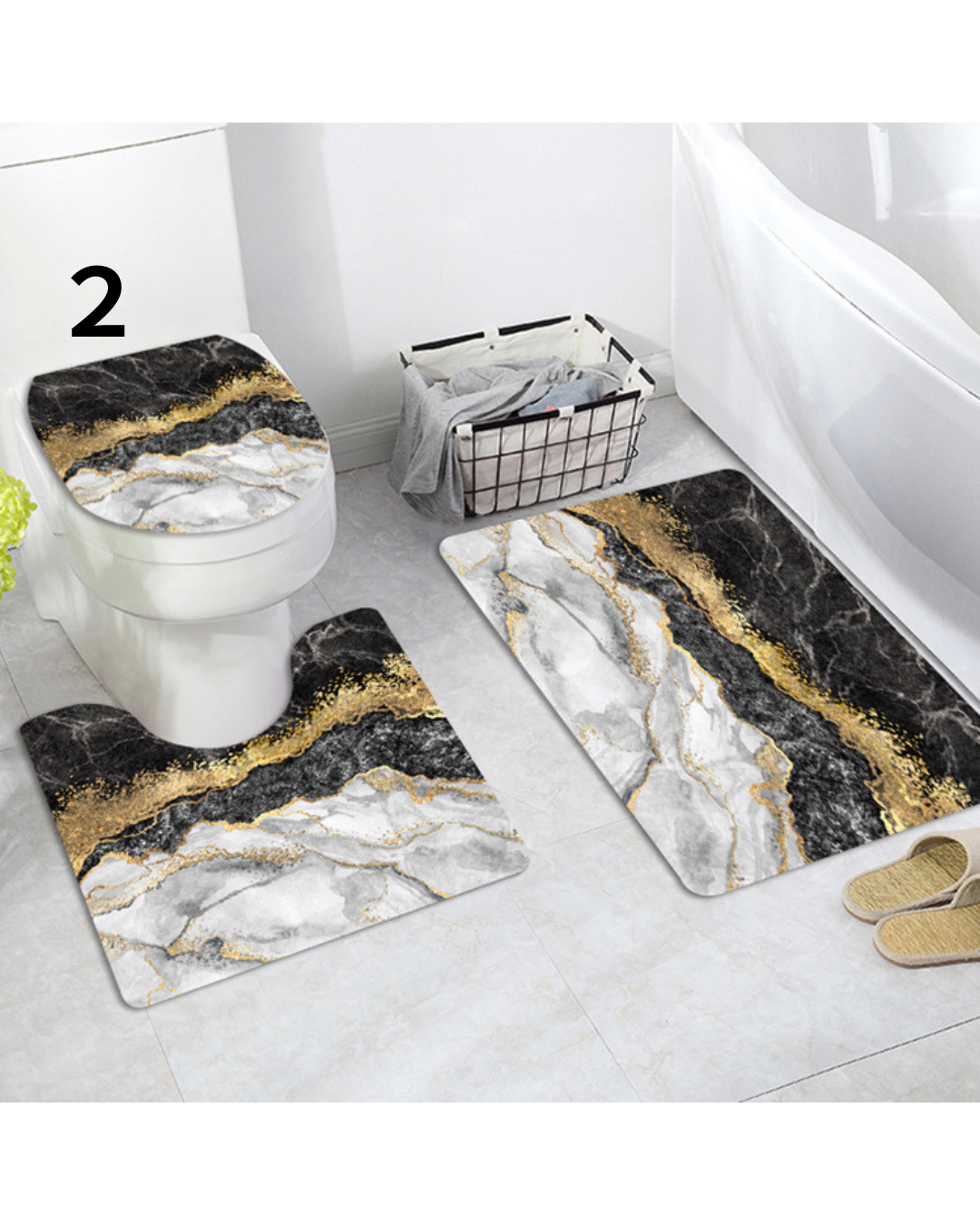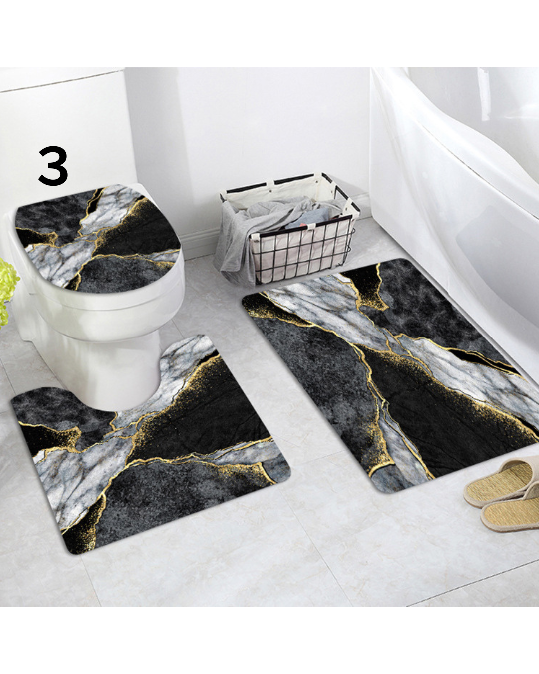 美しい大理石模様に金箔のラインが映える高級感あふれるトイレマットのセットです。