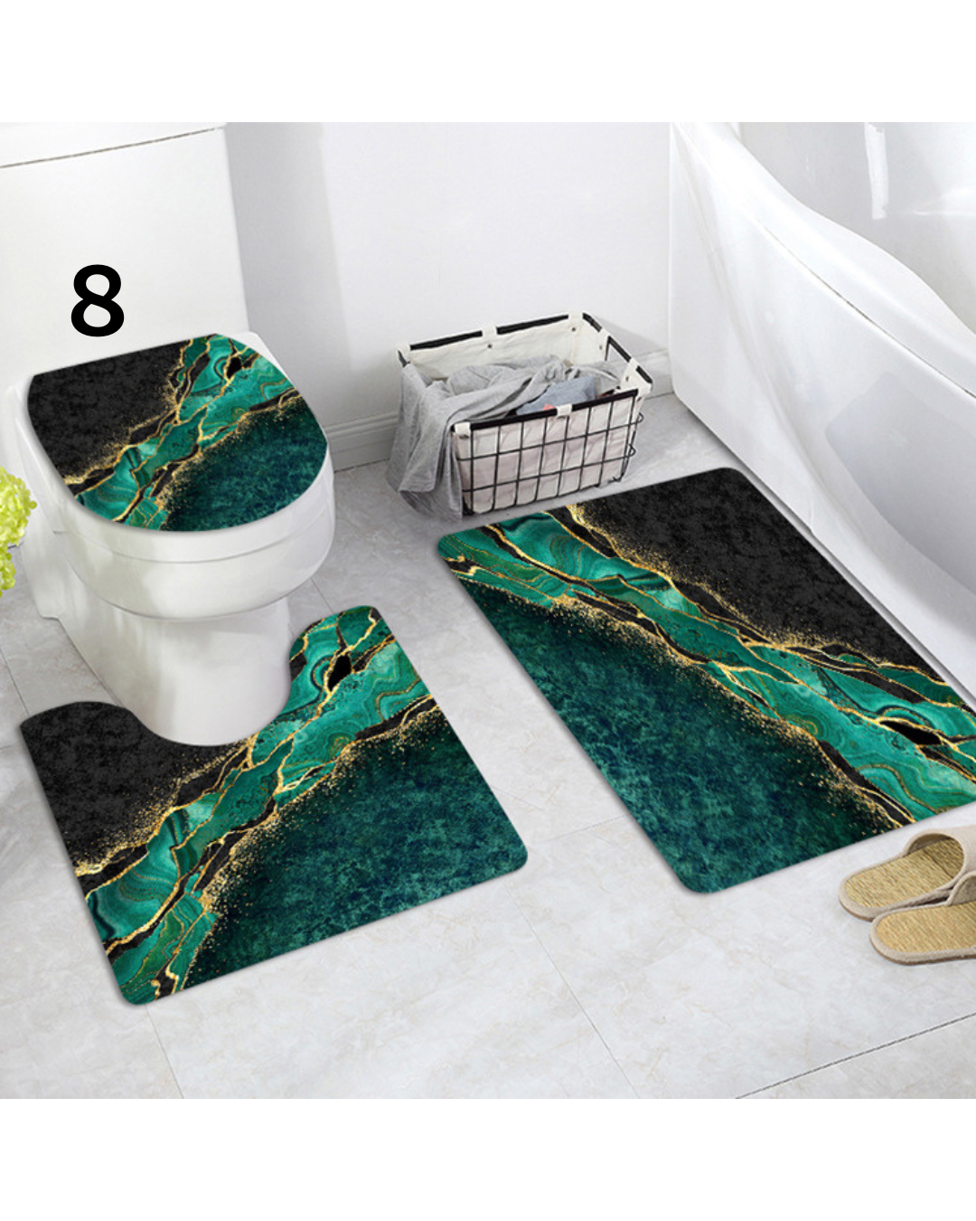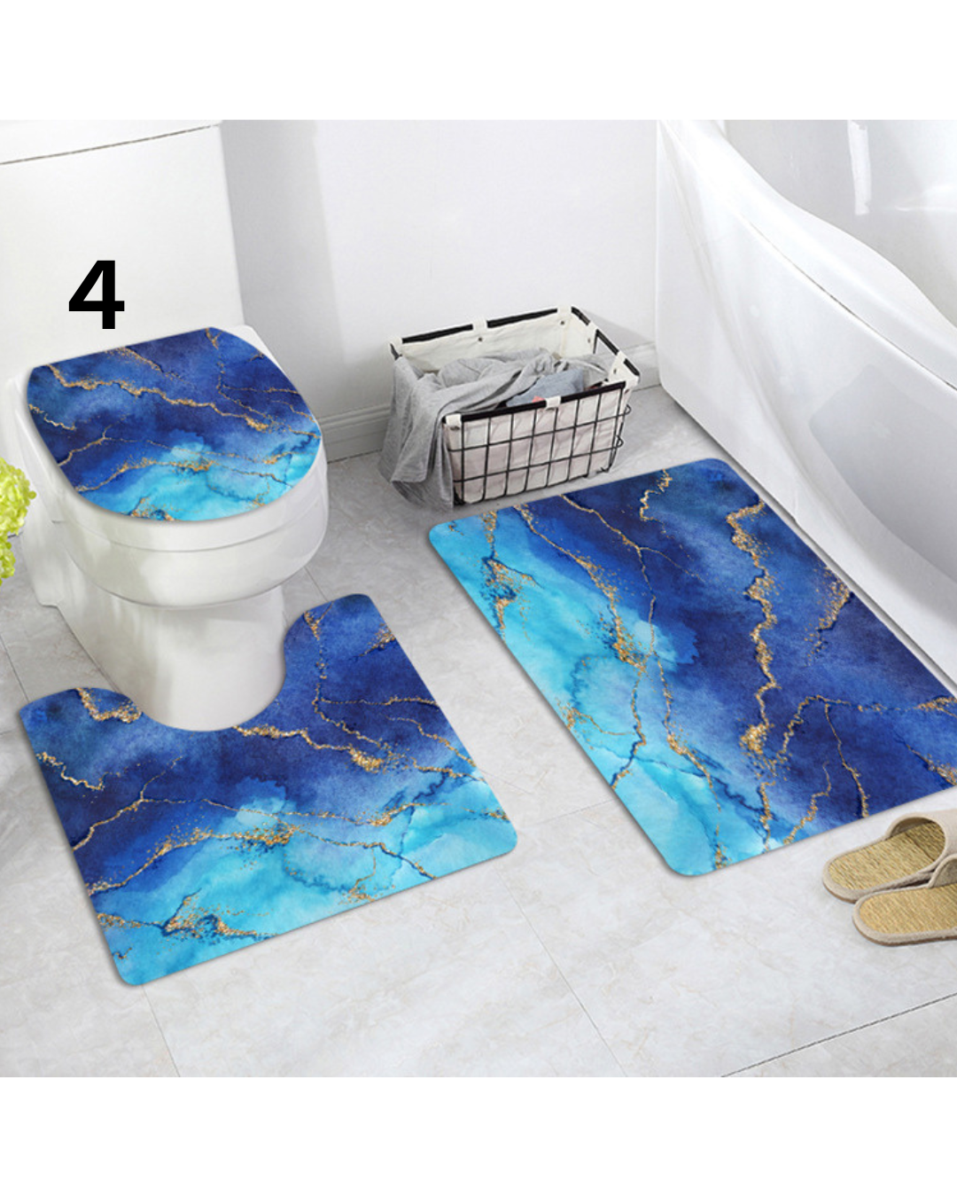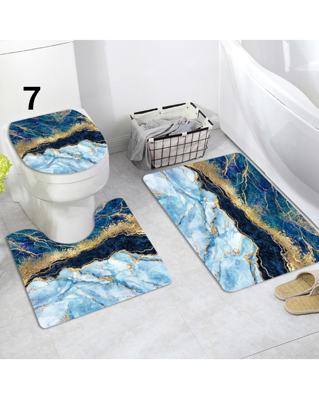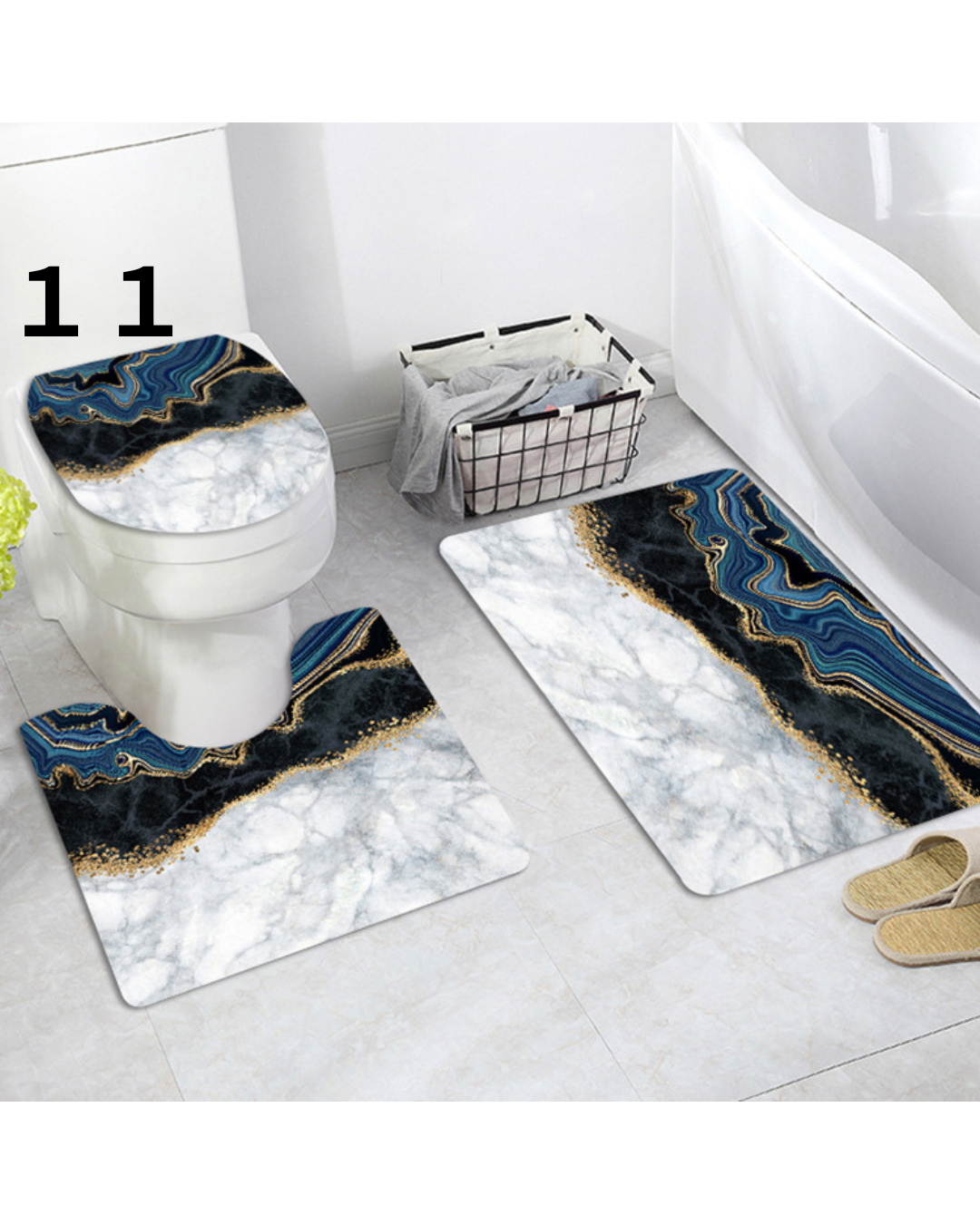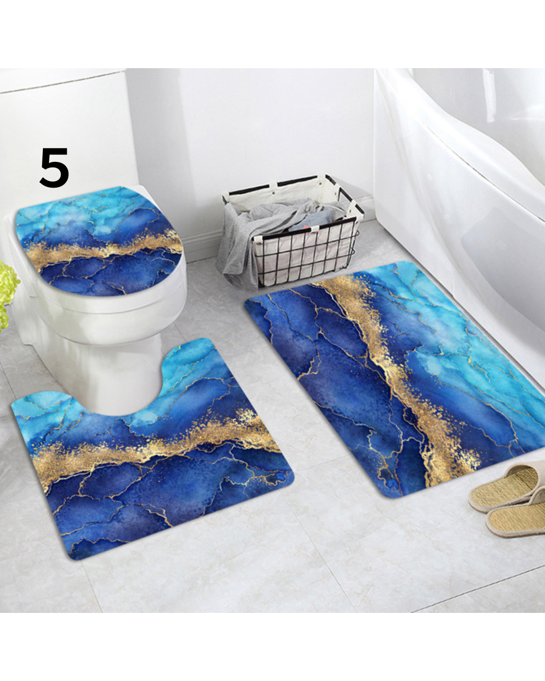 美しい大理石模様に金箔のラインが映える高級感あふれるトイレマットのセットです。