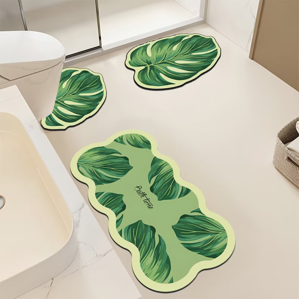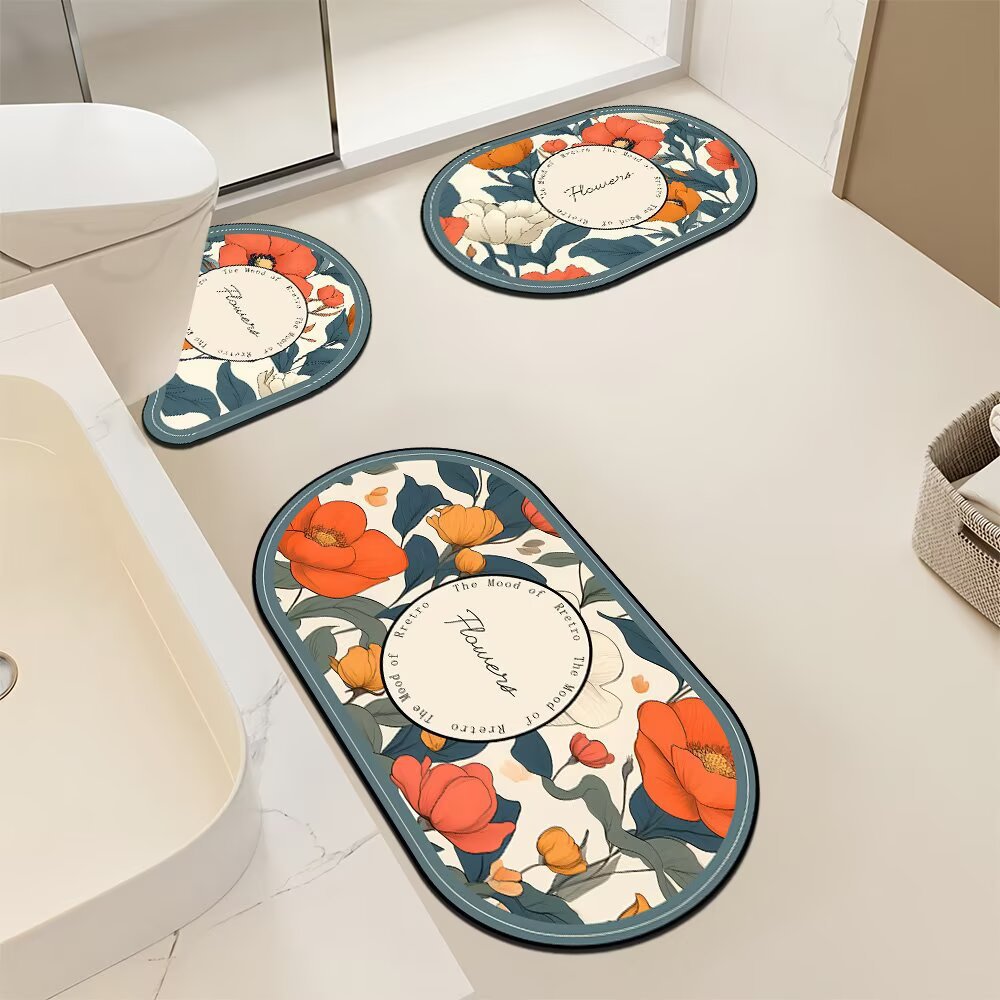 優雅な薔薇の花と爽やかな南国植物の葉をモチーフにした、トイレマットのセットです。 便座カバー、足元マット、ロングマットの三点がセットになっており、トイレ空間を統一感のある華やかな雰囲気に演出します。 立体的なデザインが特徴で、まるで本物の花と葉が床に咲いているような美しい仕上がりです。 滑り止め加工付きで安全性にも配慮し、日々のお手入れも簡単な実用的なセットとなっております。